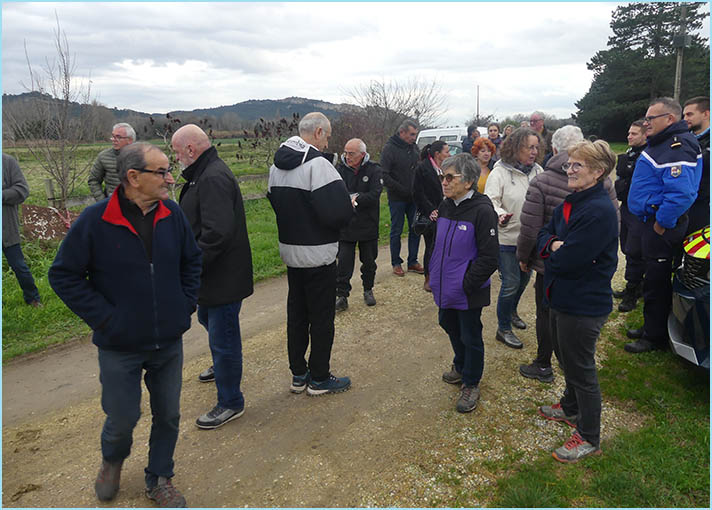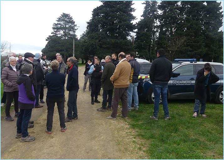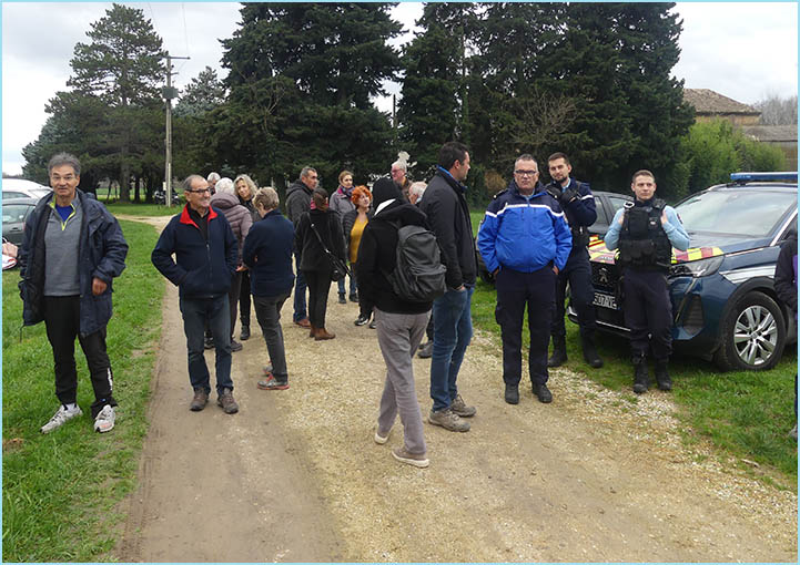 Un appel a donc été lancé pour un rassemblement spontané des adhérents d'ASNBE sur les lieux du délit où s'est retrouvée une cinquantaine de personnes dont les porteurs du projet Méthalcyon et leur famille, ainsi que trois membres de la gendarmerie de Bollène, venus constater l'infraction. La famille Coq, propriétaire des lieux et présumée exploitante du futur méthamiseur, a reconnu avoir déposé en septembre dernier 7 premiers tas, sur lesquels l'herbe a poussé. Mais ce sont des matériaux hétéroclites : tuiles, tôles, cartouches de joint silicone, ferrailles, bouteilles en plastique et autres détritus peu compatibles avec un environnement agricole.