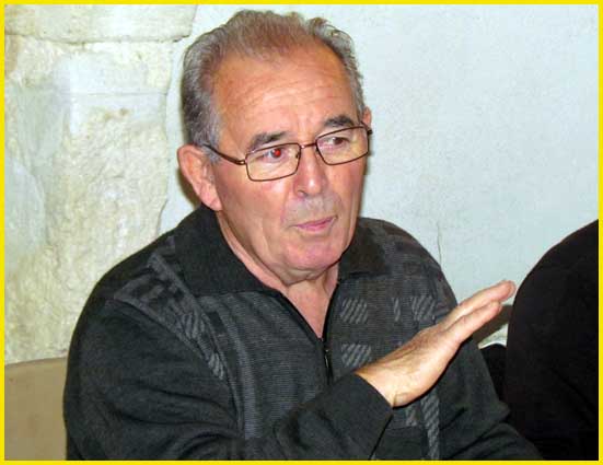 Gérard Rol (chemise rayée)  officie durant l'apéro.