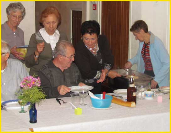 Nicole Fauvart, grande prêtresse...   Inès Oliveira (au centre)...     Gérard Rol (tablier rouge)...      et tous les autres (hors champ)... C'est le top !