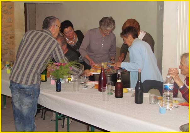 Les comptes-rendus moral et financier caracolent au beau fixe. A telle enseigne que le repas, aujourd’hui, est gratis pour tous. D’ordinaire, il n’en coûte en moyenne que 6 € par convives. Ce n’est pas cher et c’est bon. Rappel de quelques mets partagés dans l’année : souris d’agneaux caramélisées, croustillons de porc, lentilles à la beaujolaise, lapin marengo, bourride du pêcheur, etc.