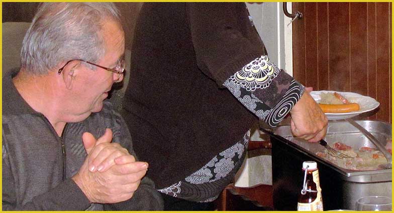 La choucroute calera les appétits. Elle était précédée d'un velouté d'asperges. Des desserts suivront...
