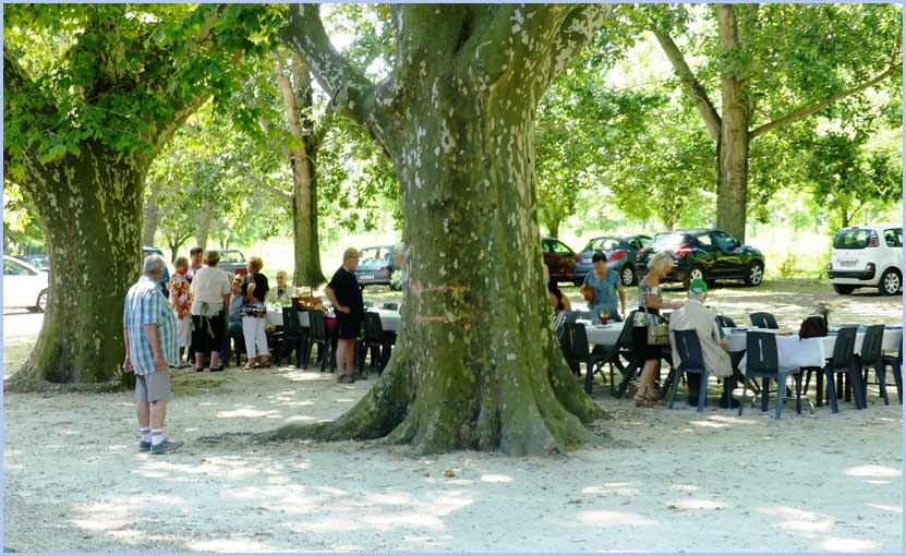 Avant la trêve estivale, qui interrompt les festins mensuels à la ferme de l’Ile-Vieille, les cuistots mondragonnais concluent la saison par un traditionnel banquet champêtre. Voilà qui double l’effectif, rallié ce jour-là par les conjoints et amis, soit plus d’une quarantaine de convives. A l’ombre des platanes, ils ont dégusté un bon menu : crudités, aubergines au parmesan, gigot d’agneau, flageolets, fromage, charlotte aux pommes et aux poires. De quoi appesantir la digestion avant d’éventuels concours de belote ou de pétanque ! Histoire de se libérer de toutes tâches culinaires, une virée gourmande est prévue en septembre pour se régaler du fameux aligot de l’Aubrac. Toujours sous l’égide de l’association « Apprendre des Anciens », les cours et repas mensuels reprendront à partir du jeudi 13 septembre.