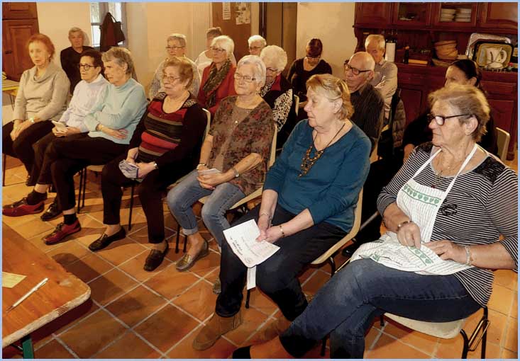 Regroupés en association, sous le label « Apprendre des Anciens », les cuistots mondragonnais ont tenu leur assemblée générale en présence du maire Christian Peyron à la ferme de l’Ile-Vieille, où, un jeudi par mois (sauf août et septembre), se perpétuent les bonnes vieilles recettes de terroirs. Tandis que les effluves d’une daube avignonnaise, avec de l’agneau aux carottes, aiguisaient l’appétit, le compte-rendu moral et financier accaparait l’assistance. En fonction du cadre familial, l’effectif est limité à une vingtaine d’adhérents. On mange bien pour pas cher pour une moyenne de 6,50 € par personne. Seuls le méchoui estival ou le repas de Noël coûtent davantage et doublent le nombre de convives. Bienvenue à Lucienne Cueille-Lagarde, nouvelle venue figurant en tête de la liste d’attente. Le bureau reste inchangé : Charles Oliveira, président ; Gérard Rol, secrétaire ; Nicole Fauvart, trésorière. Prochain rendez-vous gourmand : repas de Noël (jeudi 19 décembre). J. P.