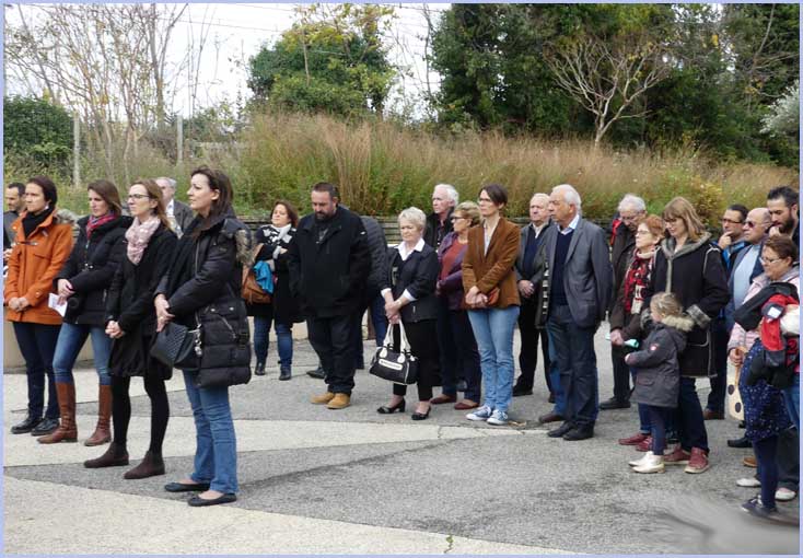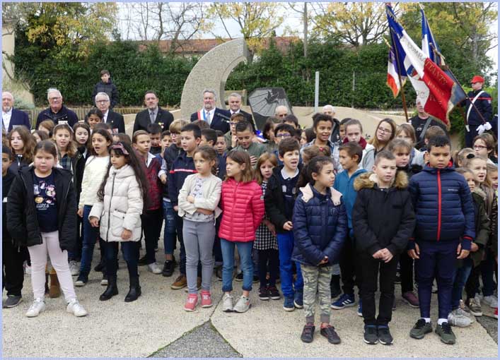 de drapeaux. Digne du 100ème anniversaire de l’Armistice, en présence des élus locaux et de Rémy Pizot, représentant le colonel Jordi Vergé, commandant la BA 115, la cérémonie s’est conclue par la Marseillaise, chantée par les enfants. |