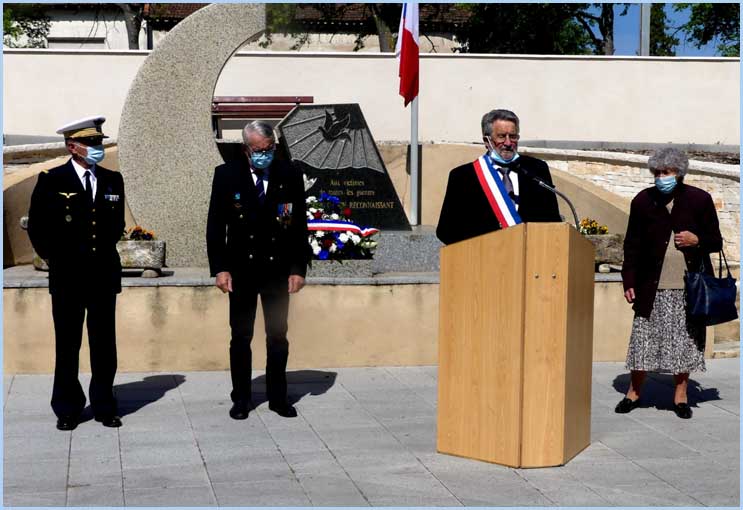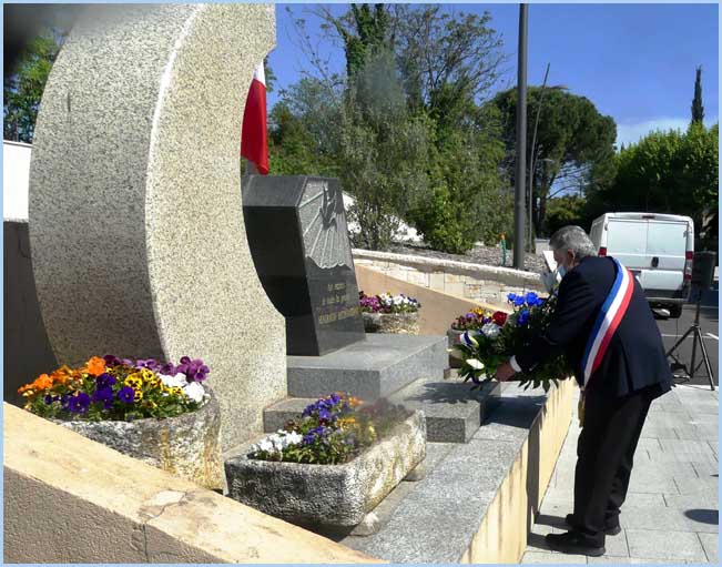 La crise sanitaire pas encore complètement éteinte a justifié une commémoration double sans public, à la fois consacrée au 76ème anniversaire de l’Armistice du 8 mai 1945 et au souvenir des victimes de la déportation. Entouré de quelques membres du conseil et d’anciens combattants, le maire Christian Peyron a lu un vibrant hommage et déposé une gerbe devant la stèle, située sur la place Vignard. J. P.
