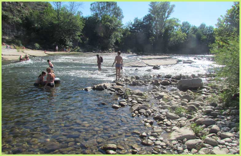 ![]() C'est la plage du lieu dit Cornillon, où défilent les canoës sur le Chassezac (affluent de l'Ardèche). |