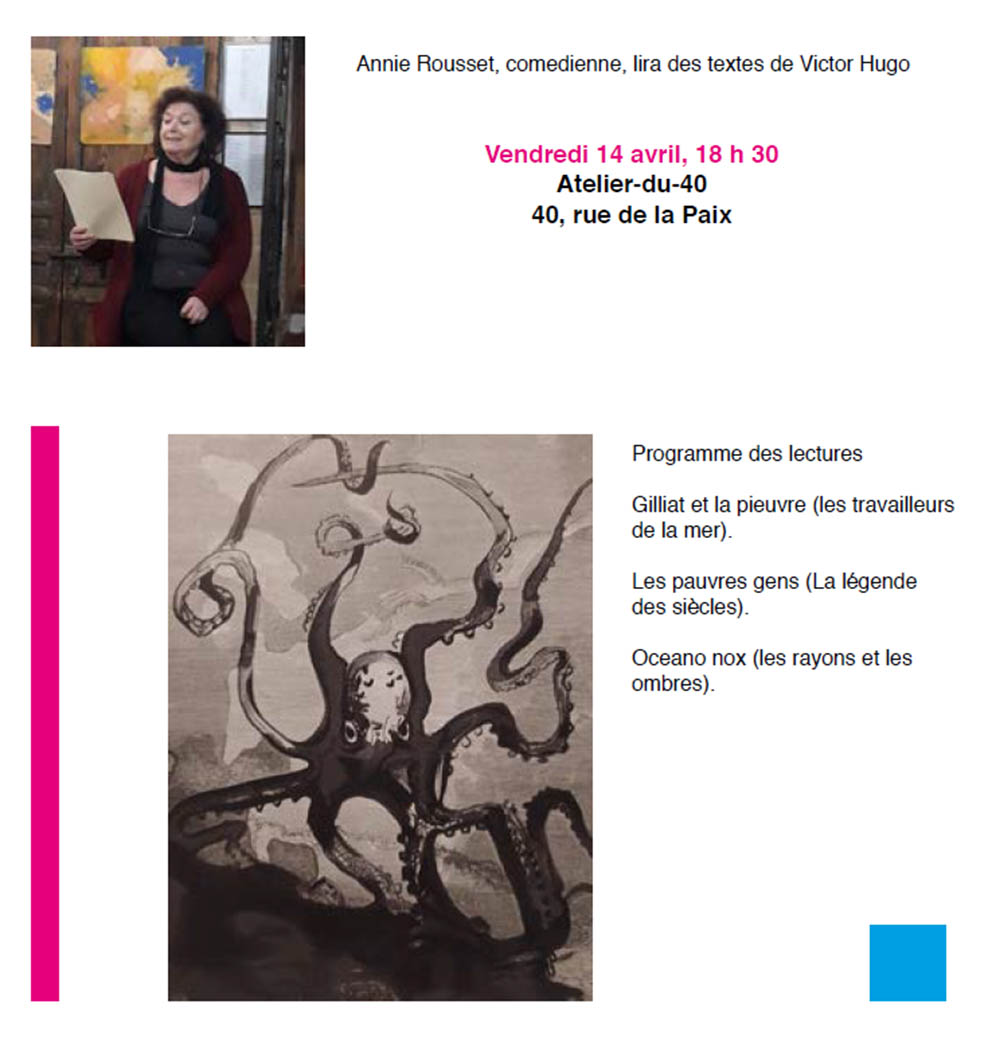 vendredi 14 avril à 18h30, l'Atelier du 40 (rue de la Paix)