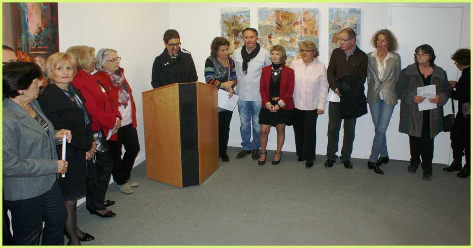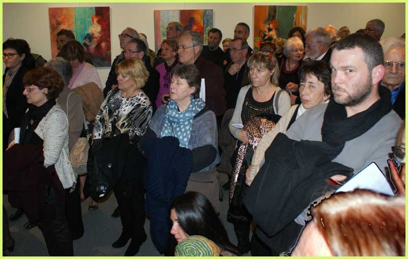 Entouré de ses émules, le maître subit le panégyrique de l'adjointe à la culture et de la présidente.