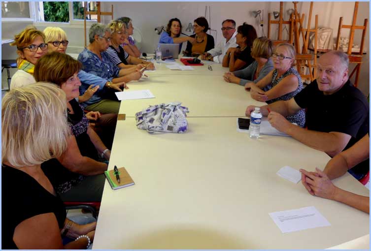 Projets 2018-2019 : poursuite des ateliers hebdomadaires, conférence sur Picasso par Annie Dandeville, Salon de Noël (Bruno Rodriguez et Marie Pic), sorties culturelles (Zao Wu Ki à Paris et Chagall à Aix), deux stages de travail (à définir), séances de nu.