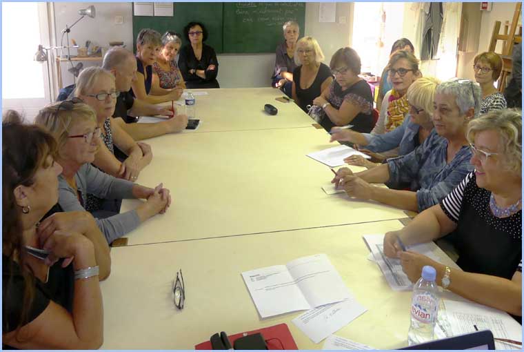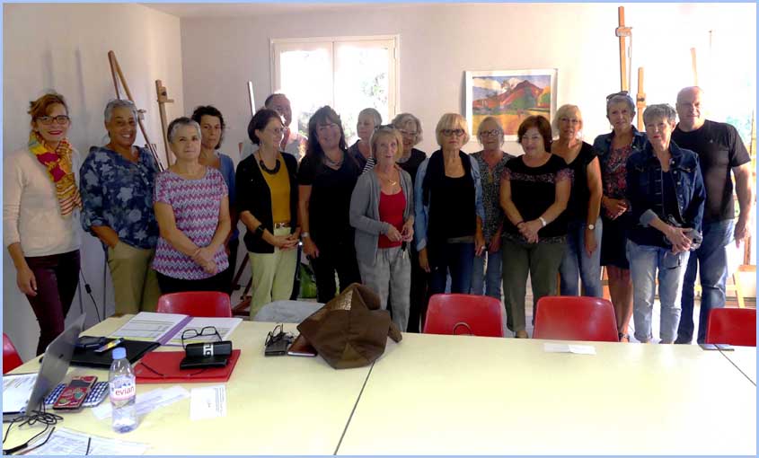Rapport d’activités : un stage dirigé par Marie-Christine Beguet et un mini-stage axé sur « l’aléatoire créatif » dirigé par Catherine Molin. Expositions de groupes et personnelles : atelier (espace Ripert), Flavio Parenti (ESPE Avignon), Isabelle Ducastaing (Temps de vivre à Uchaux), Marie Pic (Pont-Saint-Esprit), Sylvie Yvernault (Beaume-de-Transit), Valérie Polizzano (Art et Miss à Paris), Claude Thomas (Donzère), Marie-Martine Dehapiot (Temps de vivre à Uchaux). Deux expositions imminentes d’Isabelle Ducastaing (MAIF Avignon) et Tot ou T’art à Villeneuve-lès-Avignon). Deux sorties consacrées à Picasso (Montpellier) et Gauguin (Paris). Un atelier plein air organisé par Catherine Molin.