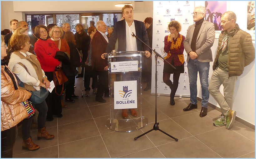 Cet anniversaire a déplacé le tout Bollène et donc une foule considérable de sympathisants. Il coïncide avec l'arrivée du printemps et, mieux encore, l'inauguration du nouvel Office culturel Ripert, l'ex-salle vétuste du même nom, aujourd'hui magnifiquement rénovée, comme s'en félicite le maire Anthony Zilio : "L'agrandissement des conditions d'accueil permet aux événements de s'y développer. Ce lieu est fait pour inspirer les artistes, associations, conférenciers et passionnés des arts. C'est un espace d'expression et de partage pour l'univers culturel bollénois."