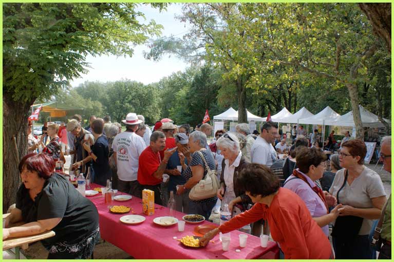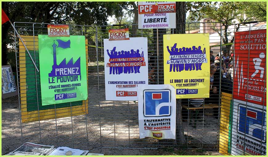 stands. La buvette et le marchand de pommes avoisinent le Front de Gauche,