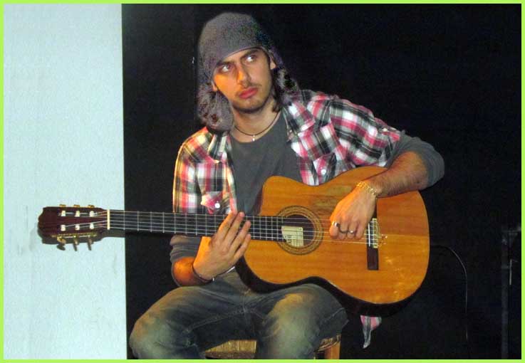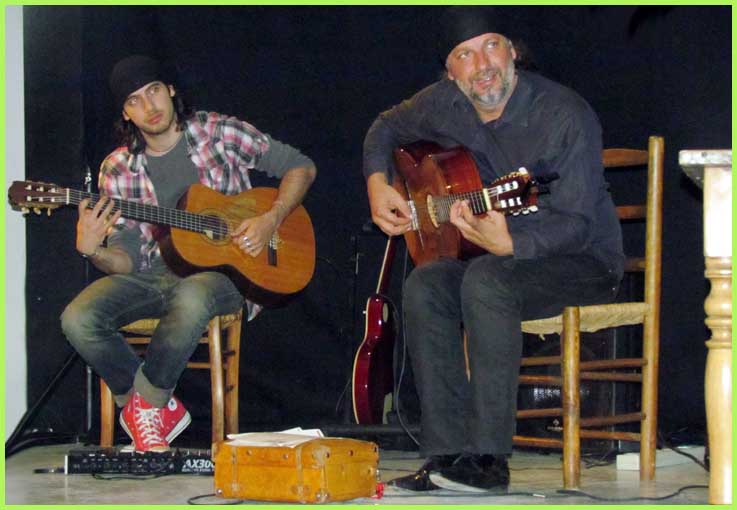 Ricardo Montserrat brocarde les dictateurs.                  Eric Fernandez (à droite) et son fils Enzo, guitaristes.