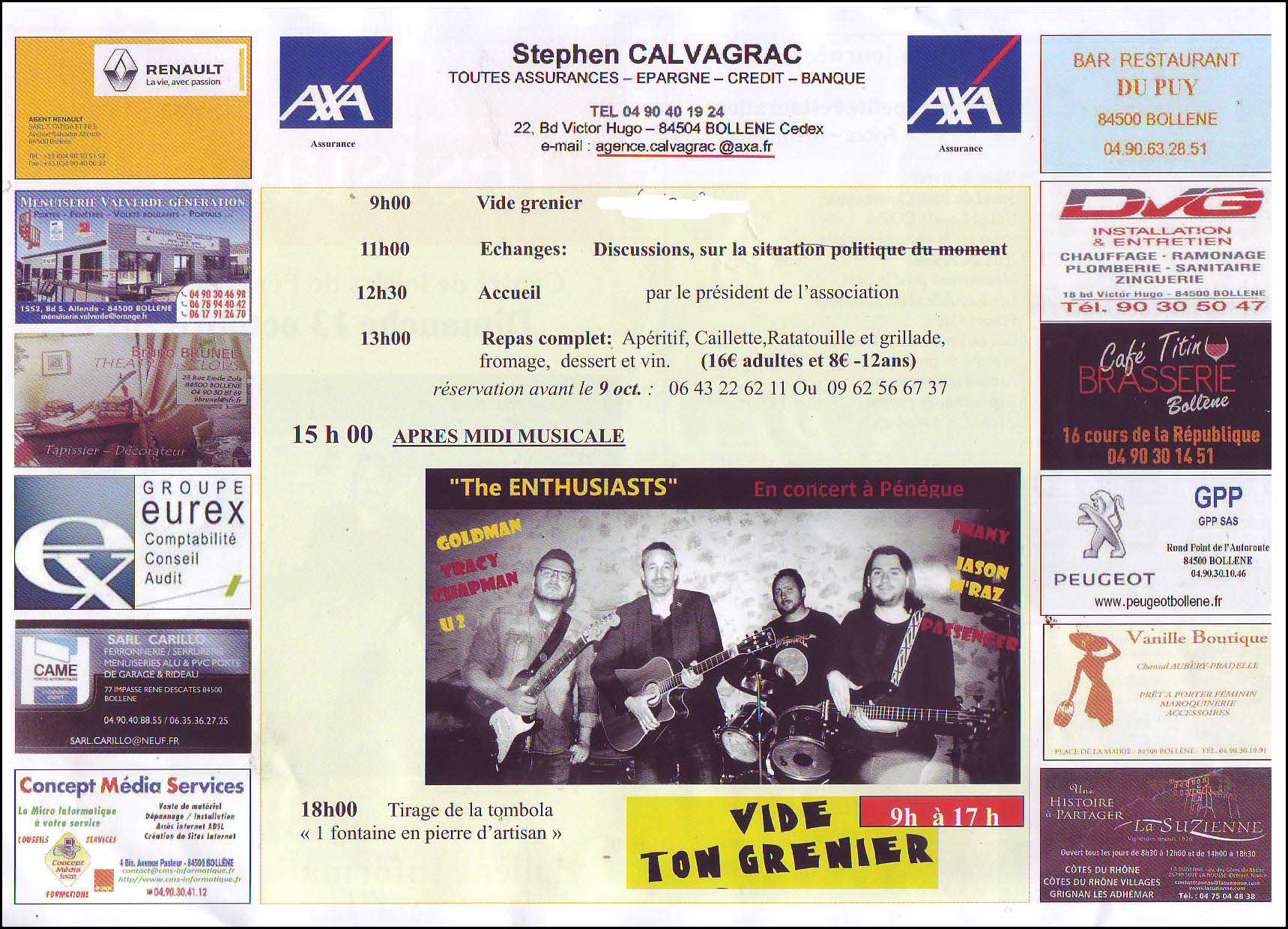 15h : après-midi musical avec le groupe « The Enthousiasts » pour des reprises de Jean-Jacques Goldman et autres.