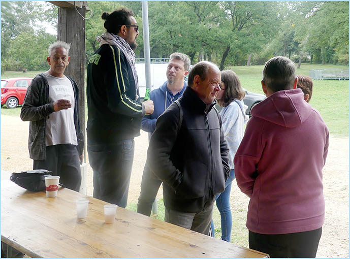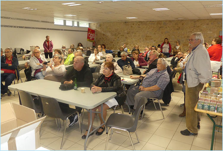 Ce qui devait être le large bol d'air annuel des résistants, membres de Bollène-Information-Pluralisme (BIP), dans la cadre de verdure du centre aéré de Pénègue, s'est transformé en une rencontre prudente, repliée dans la salle communale. Une bruine incessante a aussi découragé le bric-à-brac du traditionnel vide-grenier. Seuls quelques rares stands bâchés ont fait office de figuration amicale. Mais la vigueur du mouvement contestataire restait sauve, à l'intérieur bien au sec. Alain Baldy, nouveau président, et Annie André, militante aguerrie, y proposaient un dialogue musclé avec Roger Martin, figure politique et auteur français d'une trentaine de romans noirs, trois fois primé : Sang d'encre 2008 à Vienne, Jonquet 2010 et Ancres noires du Havre en 2011. L'altruisme de l'homme de lettres était relayé par les stands des librairies itinérantes habituelles dont celles du Mouvement pour la Paix Paix Rhona, France Cuba, etc. Vers midi, suivait un cordial repas partagé par 80 convives. D'autre part, s'y ajoutait une concertation sur le logement social parfois bridé par la mainmise du privé. Pour clore cette journée engagée, la chanson française et surtout des reprises de Renaud étaient défendues par Steph, chanteur guitariste. Tout coule de source ici comme de cette fontaine de pierre artisanale, gagnée dans la tombola. J. P.