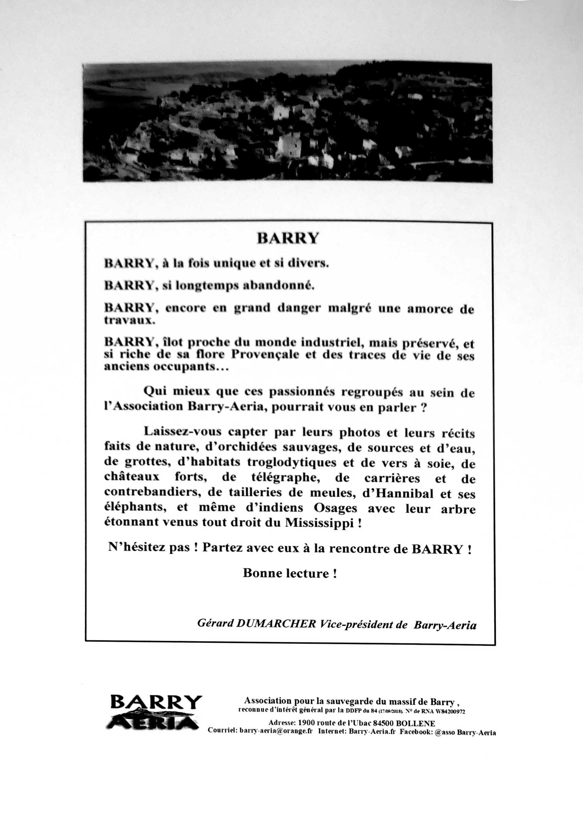 ouvrage sur Barry, fraîchement publié par l’association. Une exposition sur le même thème présentait des peintures dues à Christiane Vigli, Robert Rieux-Arnaud et Brau, et une maquette du village troglodytique, due à Sylvie Gulielmo.