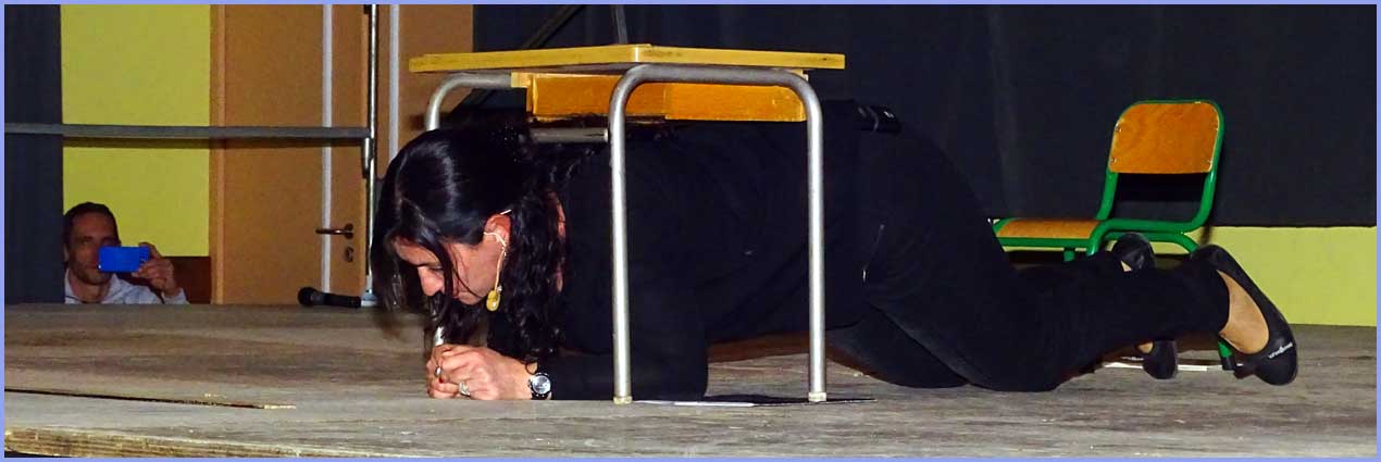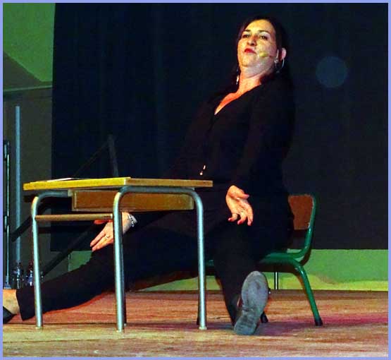 Car Bénédicte Bousquet réside à Mondragon. Tout est allé si vite que nous n’avions encore rien remarqué. Drôle et avenante à souhait, avant d’entrer en scène, elle s’est laisser cuisiner et nous a mis au parfum : « Je suis maîtresse d’école depuis vingt ans et j’enseigne aujourd’hui à la maternelle à Orange. Je fais beaucoup rire mon entourage. Les collègues m’ont dit : écris-nous des sketches. J’en ai donc écrit sur l’école, les enfants, les parents et moi-même en tant que maîtresse et maman. »