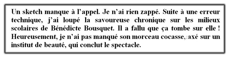 ![]() Le sextuor désopilant a fait le plein de la salle des fêtes. |