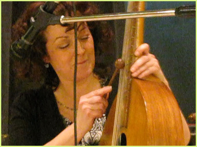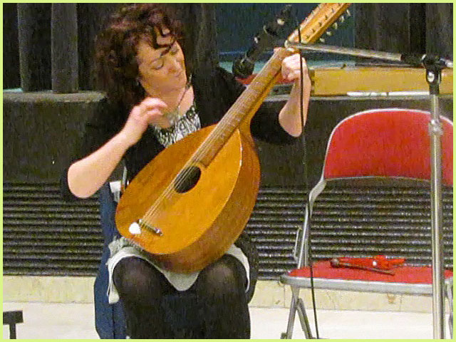 une sorte de luth d’origine espagnole, qu’elle frappe et caresse