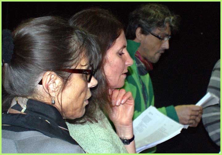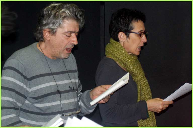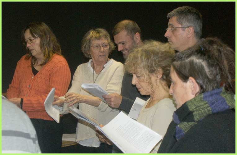 Nous assistons à une première répétition. Les 14 comédiens sont aussi choristes. Ils mélangent théâtre et chant. Parmi le florilège pondu par l’auteur, trois saynètes et quatre chansons ont été retenues, pour une heure de spectacle, drolatique et engagé.