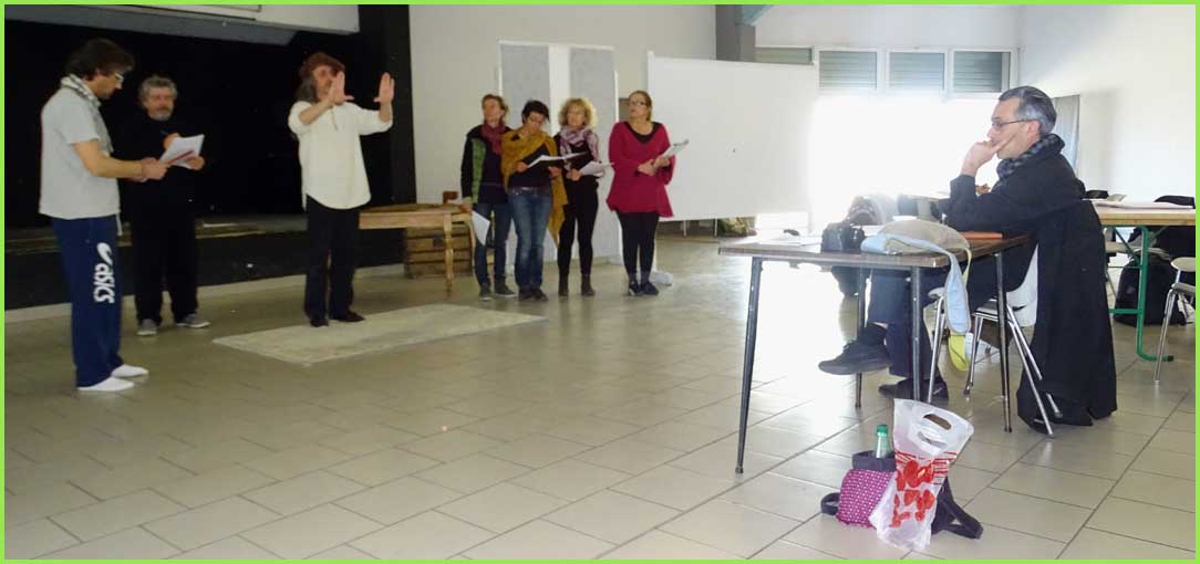 La répétition occupe exceptionnellement la grande salle de l'Espace de l'Amitié, mise à disposition par la Ville.