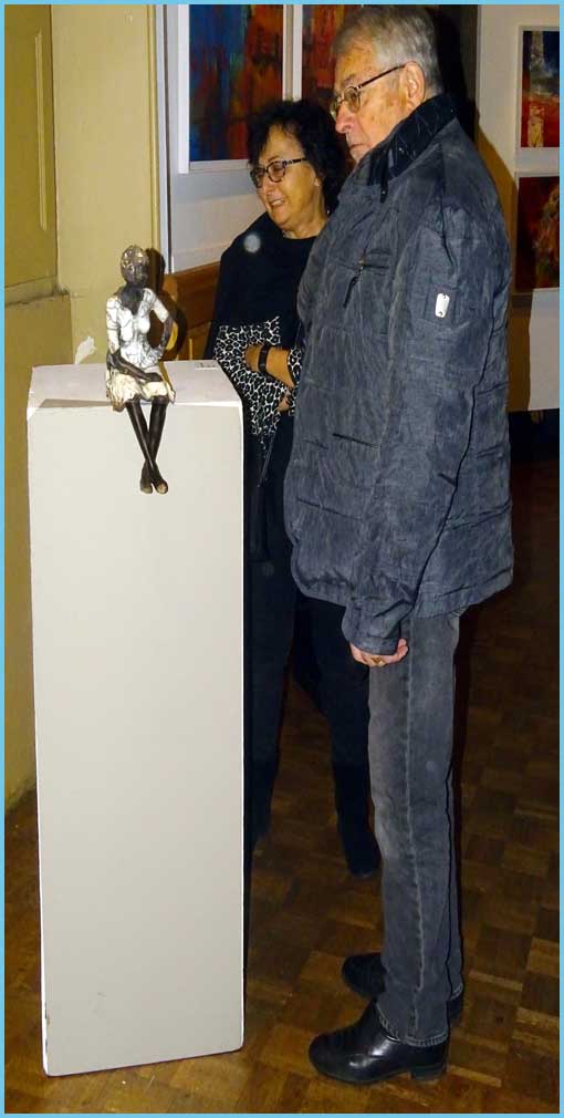 Voilà pour le décorum, agrémenté d’un fond musical, assuré par le fidèle pianiste Patrice Pascal (professeur au conservatoire) et un cordial cocktail avec boissons pétillantes. Restent ces « repères d’artistes », selon la formule désormais consacrée. Précédée d’une longue trajectoire, cette 63ème édition préserve toujours la qualité. Mais nous n’en sommes plus aux débordements audacieux en plusieurs lieux ni aux mouvements de foule. Débordant à peine sur la montée d’escalier, l’exposition n’occupe plus que la salle des Pas Perdus, assez spacieuse pour contenir plus d’une cinquantaine d’œuvres, due à dix artistes.