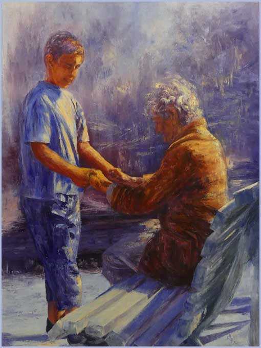 - Marie Pic poursuit sa quête intergénérationnelle avec de grands portraits dans des gammes bleutées.
