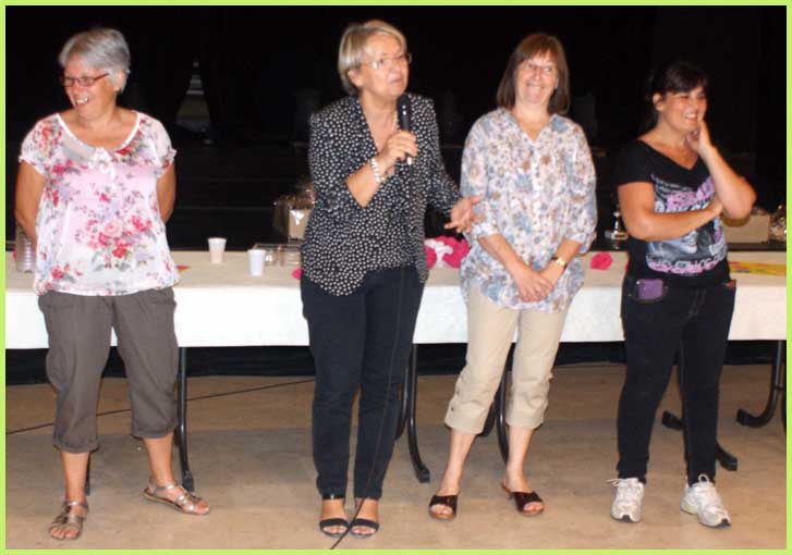 Au fil des tablées et d’une bonne humeur contagieuse.                            L’accueil humoristique de Madame le maire (à droite)