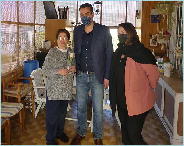 En marge d'une distribution de fleurs offertes ce jour-là aux mamies devant l'hôtel de ville, une rose et un dessin réalisé par un enfant scolarisé du territoire accompagnait le repas de midi, apporté par le service de portage à domicile. Exemple : chez Madame Antoinette Candia (rue Albert Camus) qui accueille Antony Zilio (interco) et Laëtitia Arnaud (restauration collective) (photo). Ces délicates attentions se justifiaient par la fête des grands-mères de 65 ans et plus, parfois isolées ou handicapées. Etaient déjà concernées 158 bénéficiaires en 2019, contre aujourd'hui 220, un nombre accru depuis la crise sanitaire. Un dispositif adéquat a donc mobilisé la communauté de communes, le Centre communal d'action sociale, la restauration collective et les milieux scolaires qui ont fourni plus de 700 jolis dessins. Un grand bravo à cet élan intergénérationnel et solidaire. J. P.