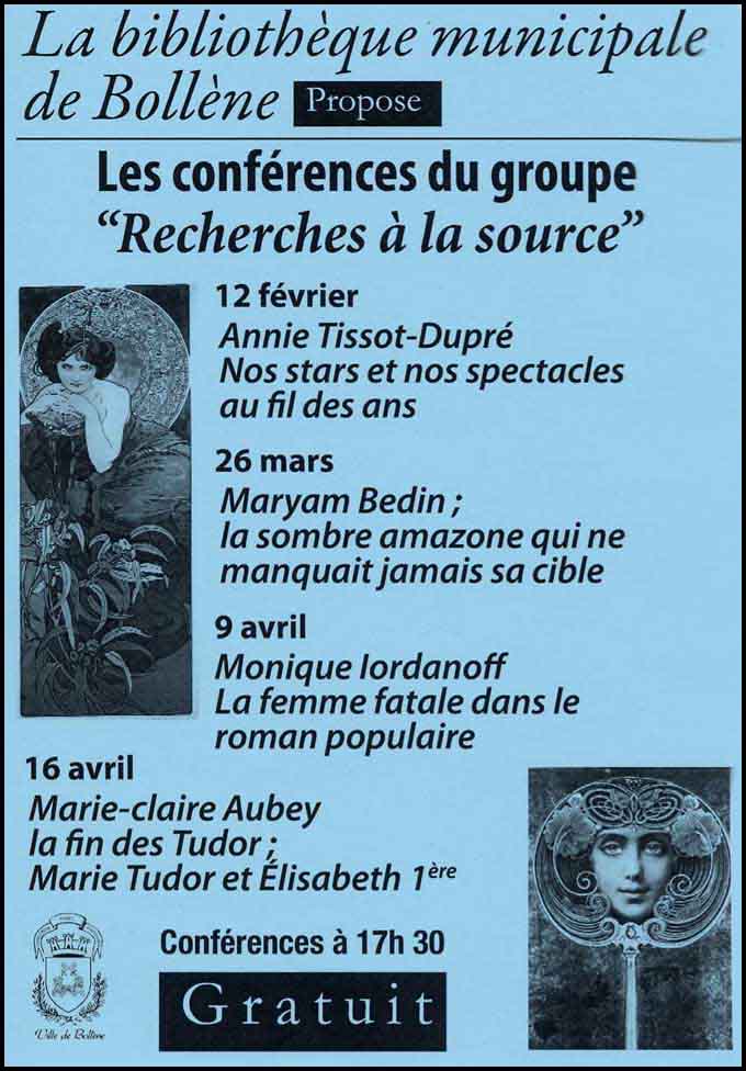 •  9 avril : « La femme fatale dans le roman populaire » par Monique Iordanoff