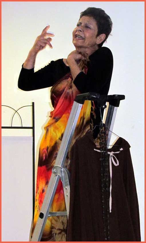 La suite monte ici d’un cran avec Maryam Bedin qui ne raconte pas, mais vit son récit, avec artifices vestimentaires et accessoires tels que ces pions grandeur nature empruntés au Club d’échecs. D’où cette cour hétéroclite se substituant à Marco Polo et son Livre des merveilles, aux papes d’Avignon, aux  croisades et autres templiers…