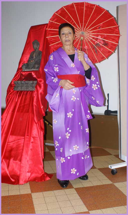 L'érudite geisha change volontiers de tenue et dispose d'un accessoiriste... (son époux chevalier servant).