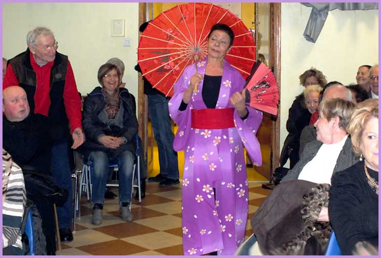 Tous les fans sont là, venus des larges environs.               Maryam Bedin en geisha rayonnante.                     Une entrée remarquée !