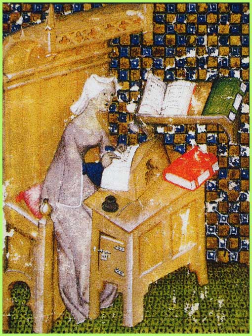 C’est sur ce canevas peu engageant que s’engage la carrière littéraire de Christine de Pisan, épouse d’Etienne de Castel, notaire du roi Charles V, qui la laisse veuve à 26 ans avec trois enfants et l’oblige à vivre de sa plume. Le deuil l’inspire. La piètre condition féminine, aussi. N’en déplaise aux universitaires,  qui décrient son œuvre, ses « Ballades d’amant et de dame » ou « La cité des dames » feront, entre autres, partie de sa postérité.