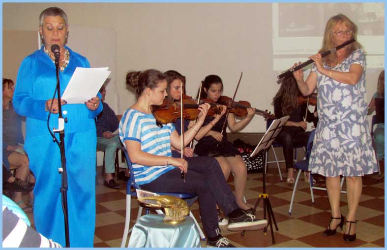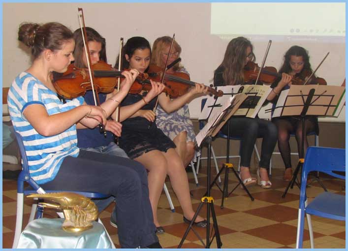 Ce vendredi soir, un spectacle a donc conclu le millésime 2014. Des poèmes ou récits, écrits à la manière d’un auteur, ont été lus à haute voix et entrecoupés d’airs joués par des musiciens du Conservatoire, dont Yvon Durnez et les meilleurs éléments de sa classe de violon, Annie Almuneau (flûte) et Emmanuelle Rauch (violoncelle).