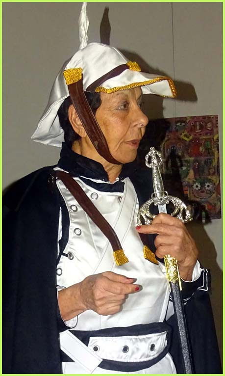 Ce samedi soir, à la bibliothèque municipale, devant ses nombreux fans venus des larges alentours, qui subodoraient toutes sortes de possibles ajustements, elle est apparue, coiffée d’un casque à pointe, vêtue d’un uniforme blanc et d’une cape noire, et serrant un sabre contre sa poitrine. C’était Bismarck !