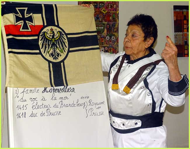 Otto von Bismarck (1815-1898), le chancelier de fer, sert donc de pivot à l’inénarrable évocation de la conférencière habitée, qui parle au présent, endosse au passage, par un simple geste ou une attitude, la défroque des multiples personnages ressuscités. Pour faire court, limitons-nous ici à la trame : le Saint empire romain germanique, de l’empereur Frédéric Barberousse (1122-1190) à Guillaume 11 (1859-1941), via d’illustres autres artisans du royaume de Prusse. Dans ce dédale, entre autres, apparaissent Voltaire, Napoléon III ou Hitler, qui nous amènent jusqu’aux confins de la seconde guerre mondiale. Une flamboyante odyssée qui, deux heures durant, a subjugué l’auditoire !    J. P.