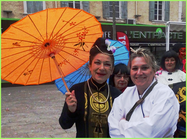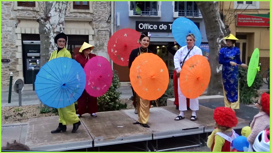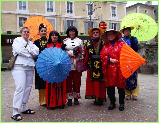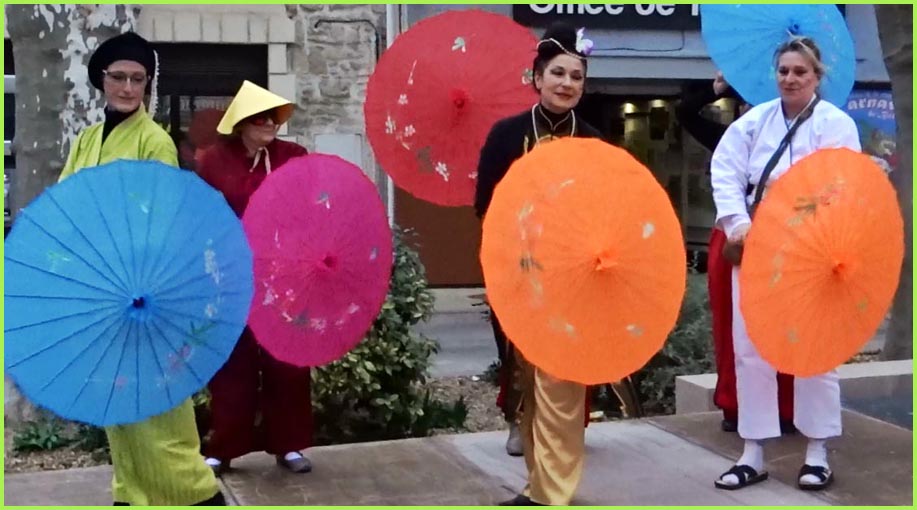 ![]() ![]() ![]() Les égéries de l'Oustau sont bien là. Elles ont revêtu leurs costumes de fête asiatiques du dernier repas de Noël... Elles ont aussi rejoué leur ravissant numéro des ombrelles |
