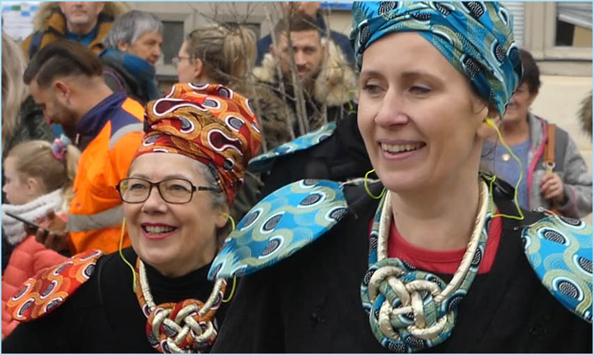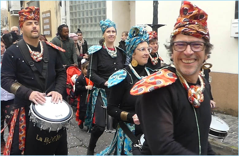 Bigarré à souhait et escorté d'une batucada brésilienne, le