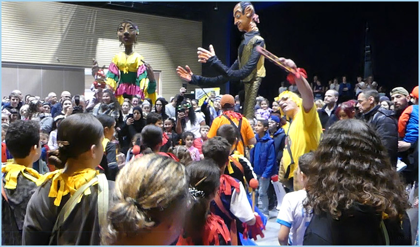 marionnettes géantes, à la batucada, aux grosses têtes du Foyer