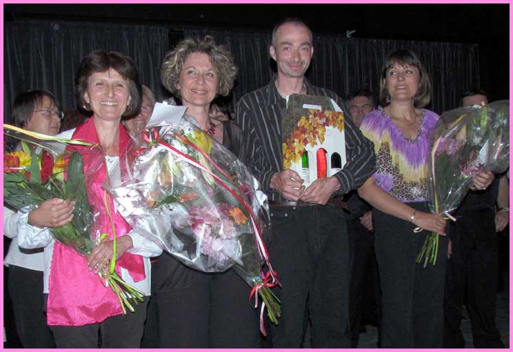 Les quatre chefs de chœurs sont ovationnés et couverts de fleurs.