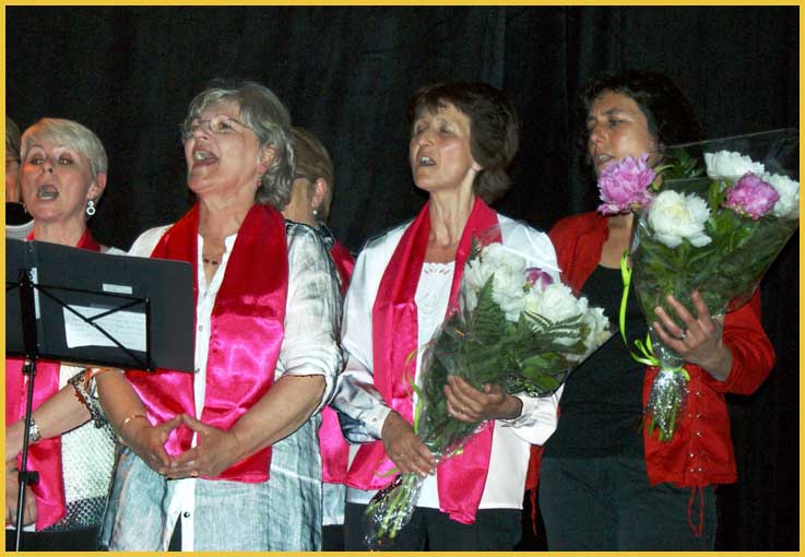 Luc Pidou dirigeait « Cantiamo Insième » de Nyons, qui a joliment privilégié la chanson italienne. Brigitte Piris-Répition (prof de guitare au Conservatoire de Bollène) nous dévoile ici son talent de chef de chœur. Elle dirige « La Buissonnière », à Lapalud, qui nous a notamment conquis avec « Swing low » (gospel) et « Cécile, ma fille »  (Nougaro).