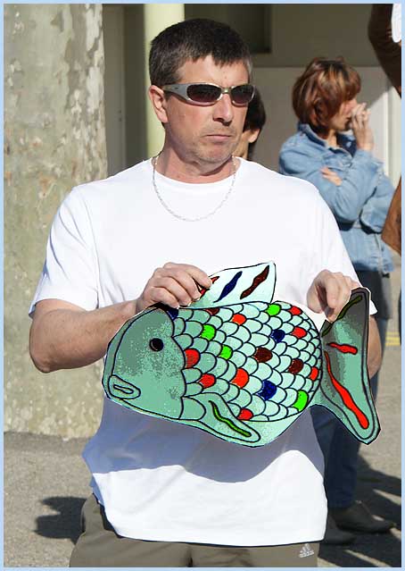 l’irruption soudaine de poissons d’avril, brandis par les adultes,