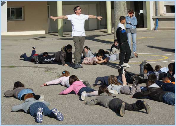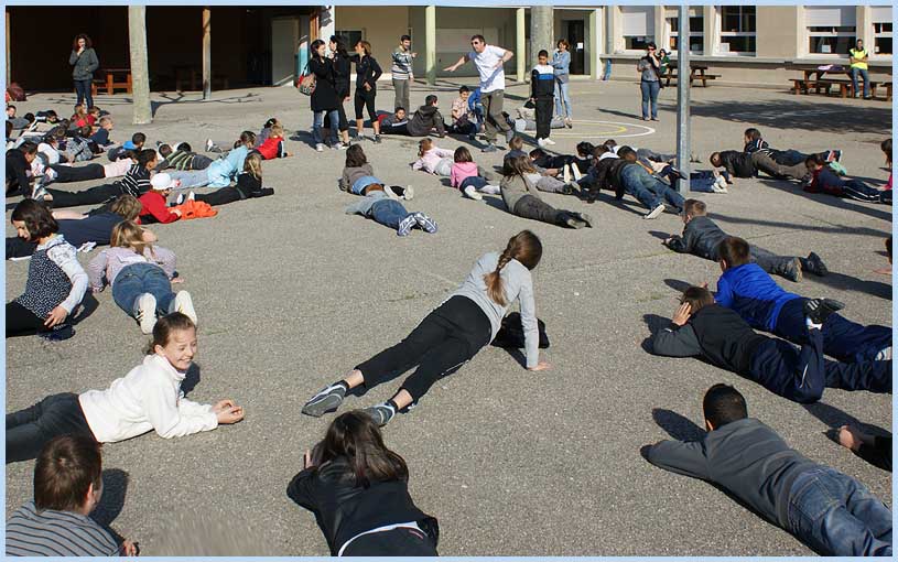 ventre et sur le dos, pas moins de 250 enfants ont mimé la nage, comme