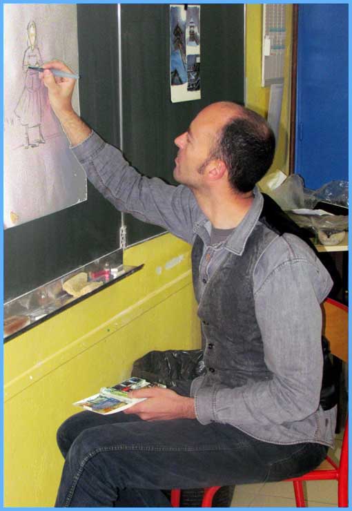 Fabian Grégoire, auteur illustrateur pour la jeunesse.          La classe de Mme Rigaud est captivée par l’intervention.