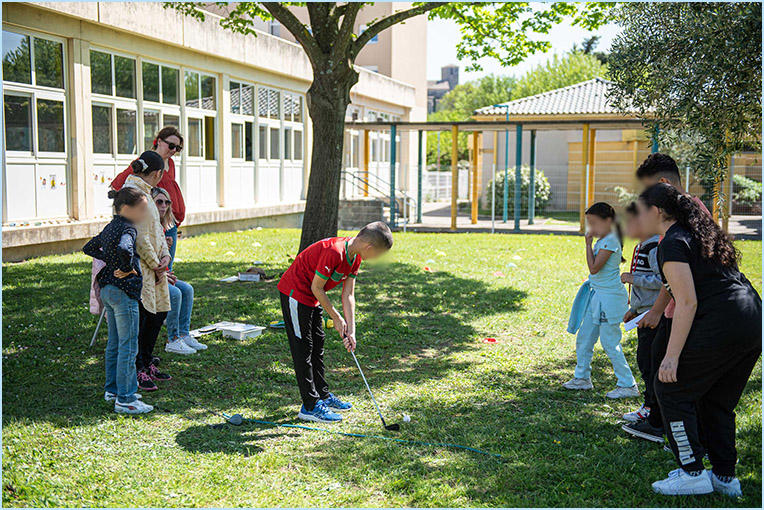 sportifs : athlétisme, lutte, tir à l'arc, golf. Chaque équipe