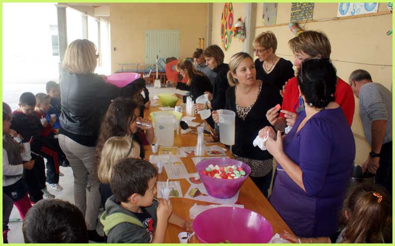 Mise à contribution, l’APEL (association de parents d’élèves de l’école libre) et sa nouvelle présidente Karine Rakotozafy ont, d’une part, concocté une délicieuse fondue au chocolat, et, d’autre part, sollicité le concours des résidants du foyer 3ème âge Alphonse-Daudet pour la confection de « chaudoudoux » (pompons », distribués aux enfants.