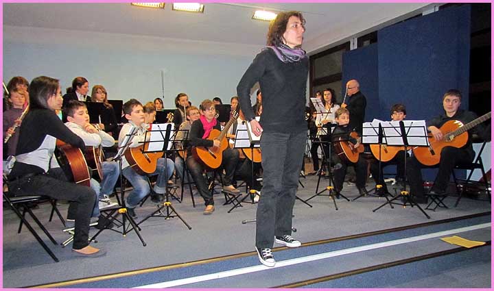 Brigitte Piris-Répition, professeur de guitare, dirige un ensemble orchestral.