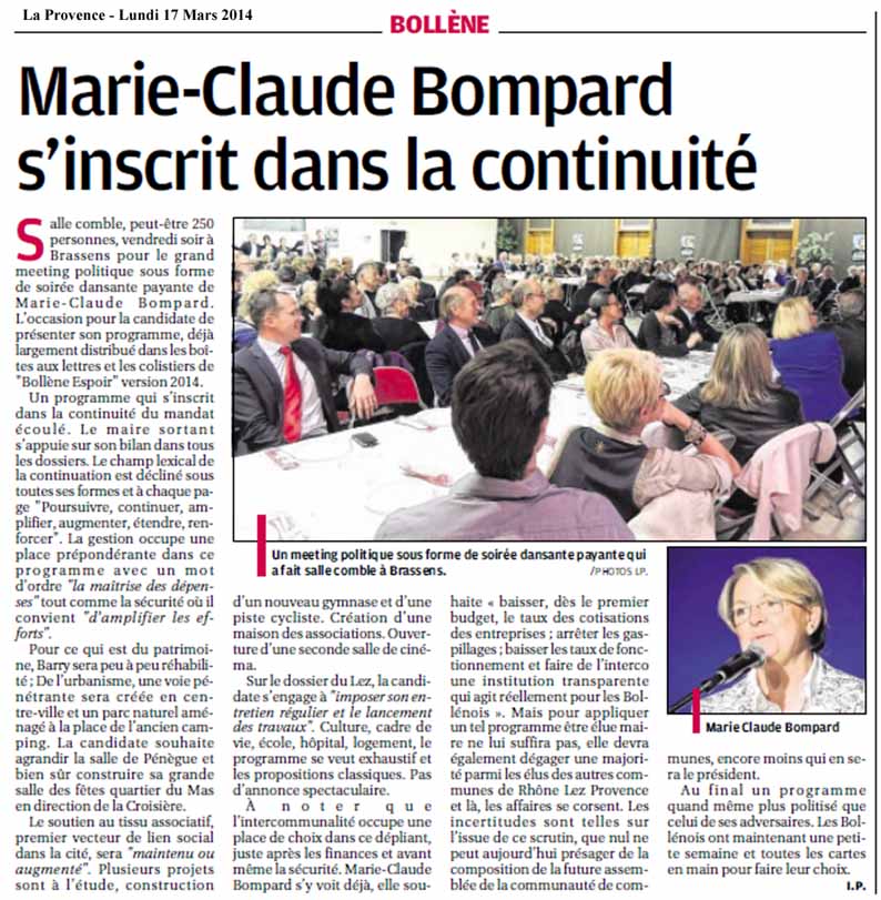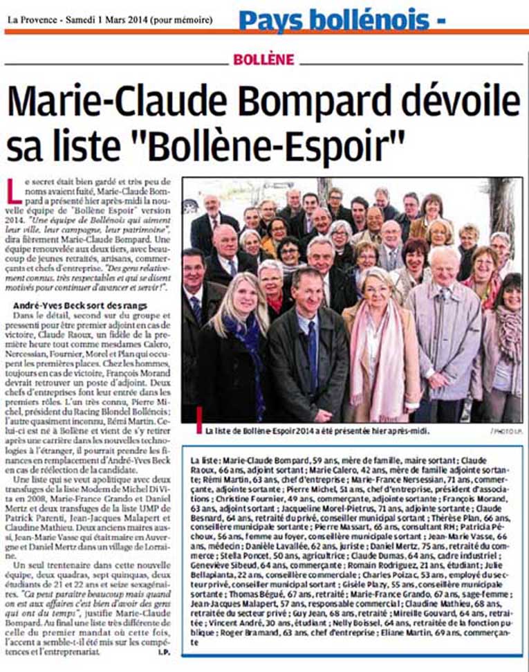 Marie-Claude Bompard présente sa liste"Bollène Espoir" | Samedi 1er Mars 2014 |