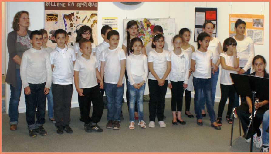 La chorale de l’école Jean Giono.                                                       Les musiciens et choristes.
